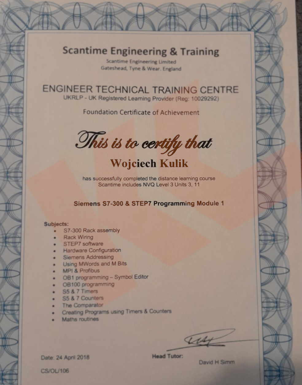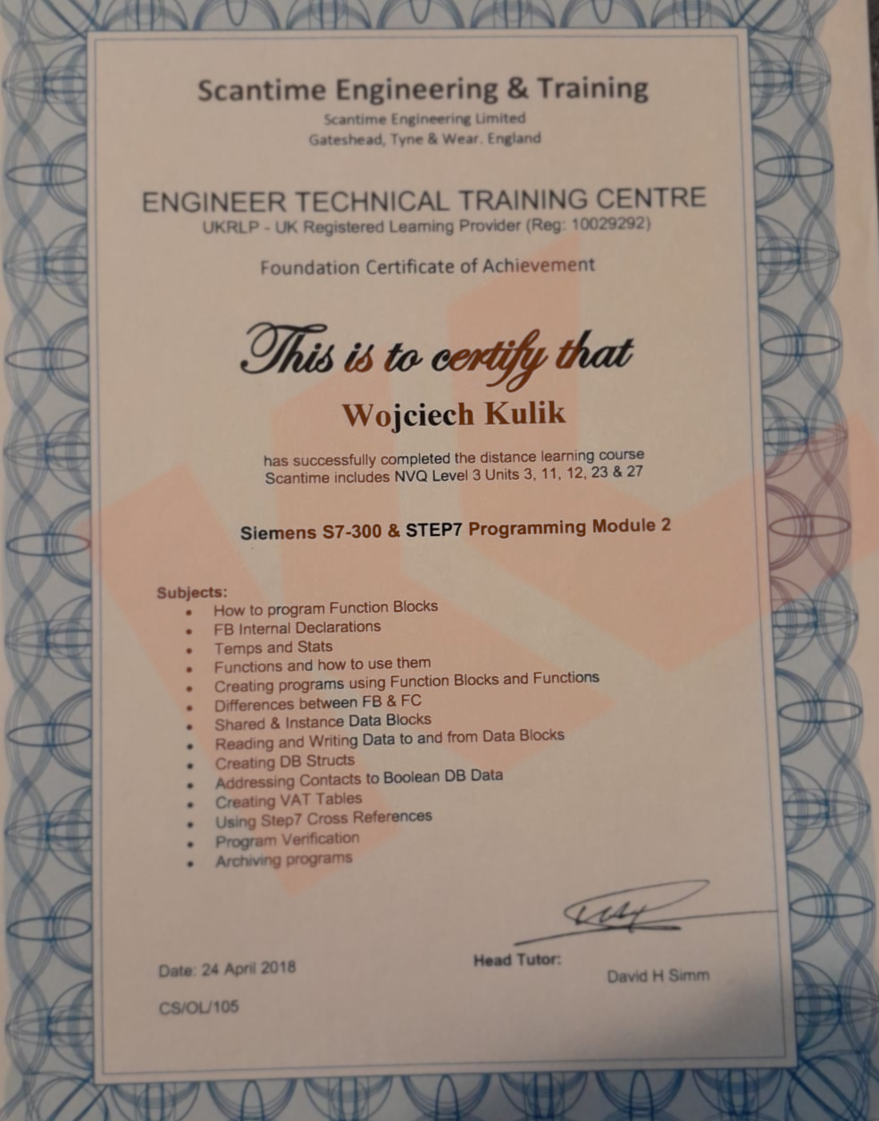 Siemens S7-300 & STEP7 Programming Module 1&2. SCANTIME, UK