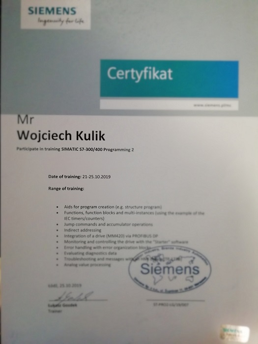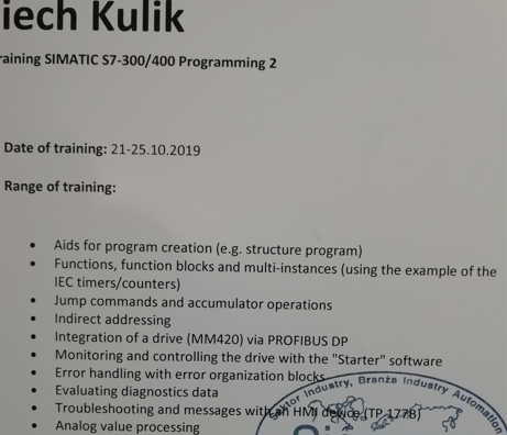 Yes, the October 2019 was very busy, as I have completed two robot programming courses and this 5-day advanced S7-300/400 training at Siemens in Łódź, Poland.